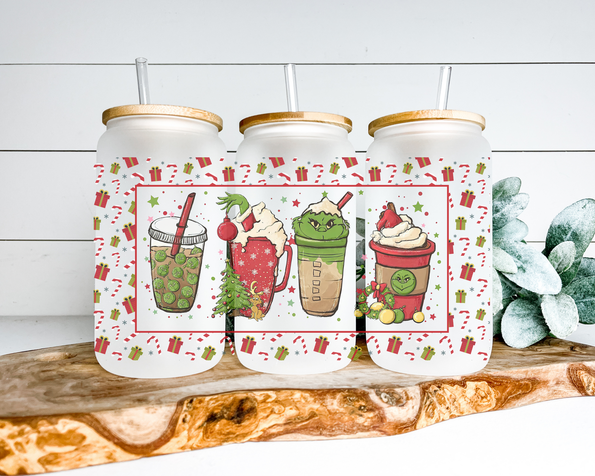 Mean, green, and full of caffeine - this tumbler is for the Grinch lovers! Featuring festive drink illustrations with a cheeky twist, it’s a holiday must-have.