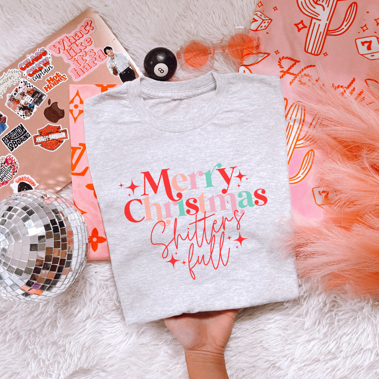 You will love this cheeky holiday graphic tee! The “Merry Christmas, Shitter’s Full” design is a hilarious nod to everyone’s favorite Christmas movie moment - perfect for ugly sweater parties, holiday photos, and gifting season.