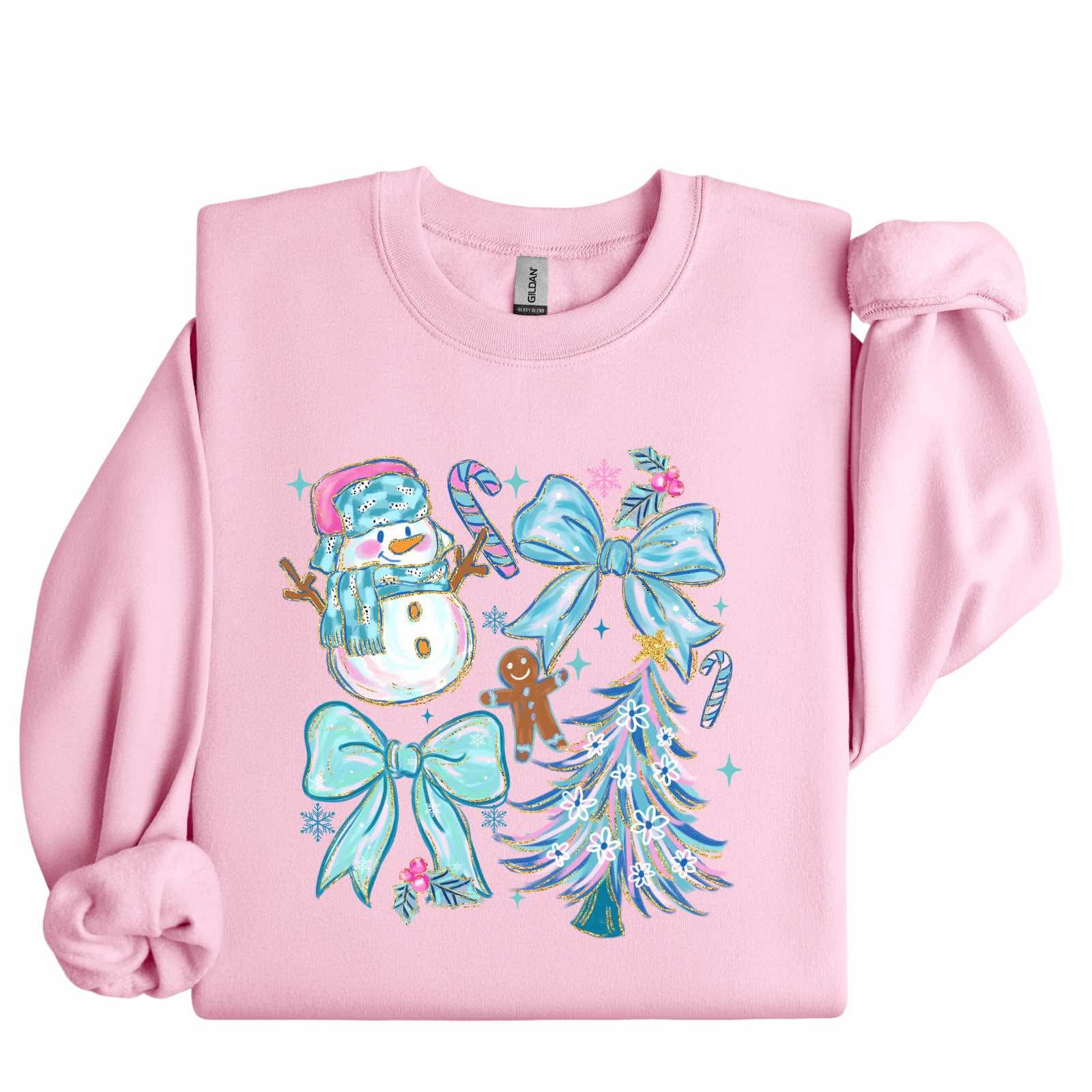 Sweet, magical, and full of winter charm - this hand-drawn style features a snowman surrounded by bows, candy canes, florals, and festive details. It’s the perfect mix of cozy and cute, making it a standout for the entire season.